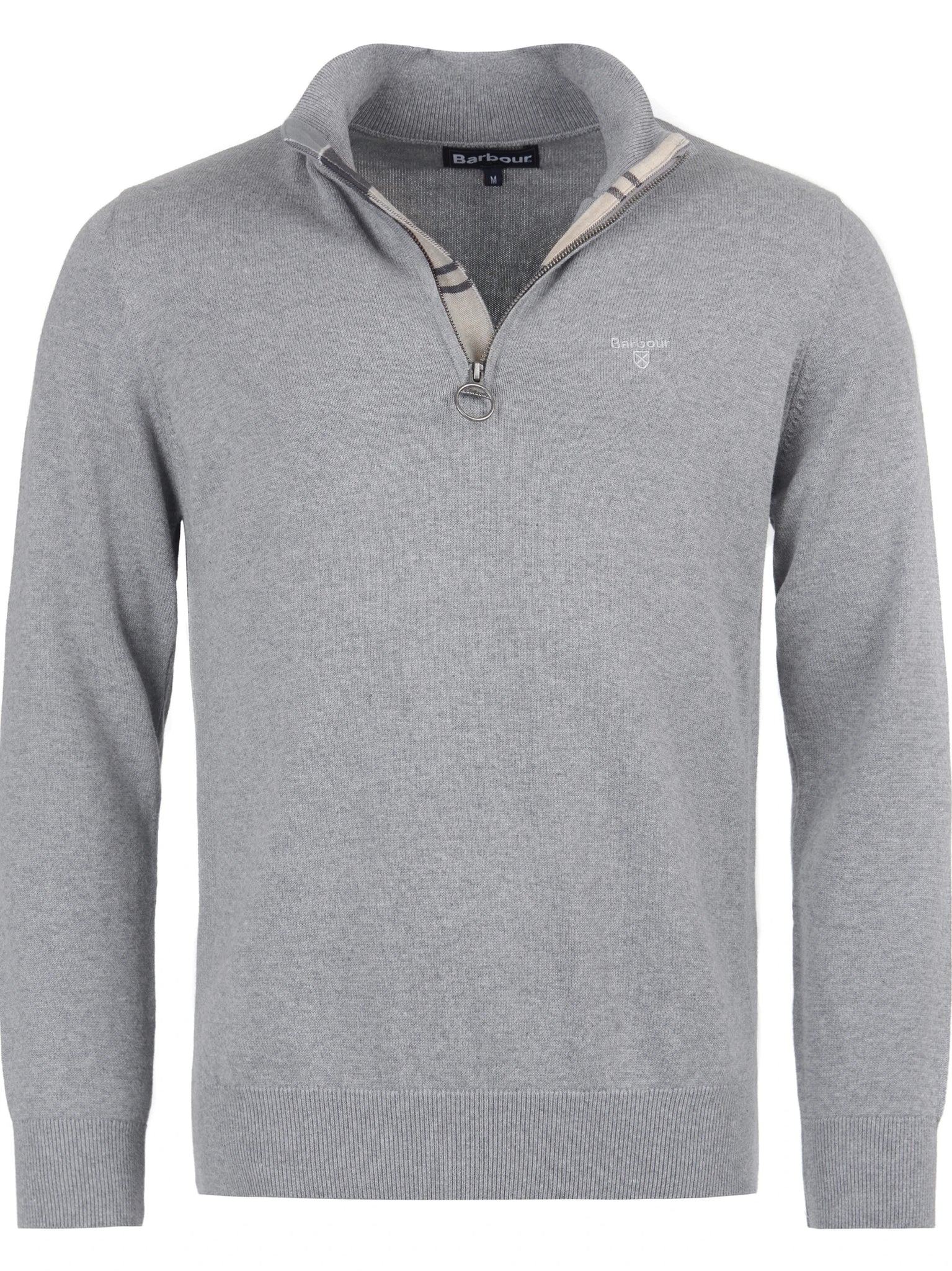 A wardrobe essential, this half-zip jumper is elevated with subtle Barbour detailing. Coming in a lightweight Cotton knit, the zip closure is trimmed with tartan to the inner facing and features our signature ring-puller detail, while a tonal embroidered logo to the chest completes the look.